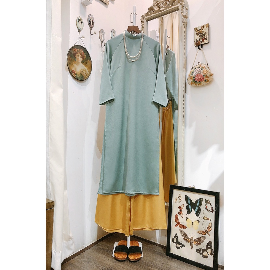 Set Áo dài Rosemary lụa tây thi xanh ngọc kèm quần lụa (tùy chọn) vô cùng cổ điển, nổi bật nhưng không kém phần dịu dàng nữ tính đậm chất nhà Rosemary. Chất liệu vải lụa mềm rũ, thoáng mát và có độ co giãn nhẹ. Áo dài và quần chỉ có một size Freesize (cho cân nặng dưới 56kg), dáng áo suông rộng thoải mái, phía sau có chiết ben. Chiều dài tà áo 105cm, cổ cao 3cm, phía sau có dây kéo tiện lợi. Chiều dài quần 90cm, eo quần 35cm, phía sau có lưng thun co giãn. Ảnh thật do shop tự chụp. Bạn nhớ gửi message cho shop để được tư vấn kĩ càng và chọn màu quần theo ý muốn nhé. 𝓡𝐨𝐬𝐞𝐦𝐚𝐫𝐲 𝓒𝐥𝐨𝐭𝐡𝐢𝐧𝐠 🌾𝔦𝔫𝔱𝔞𝔤𝔢 𝓢𝔱𝒚𝔩𝔢 𝐂𝔩𝔬𝔱𝔥𝔢𝔰, 𝓢𝔥𝔬𝔢𝔰, 𝓐𝔠𝔠𝔢𝔰𝔰𝔬𝔯𝔦𝔢𝔰 🦉𝓞𝒑𝒆𝒏 𝒅𝒂𝒊𝒍𝒚: 𝟏𝟎𝐚𝐦 - 𝟗𝐩𝐦 🥀𝑪𝒐𝒏𝒕𝒂𝒄𝒕 𝒖𝒔: 𝟶𝟿𝟶𝟾𝟹𝟾𝟿𝟿𝟿𝟽 - 𝟶𝟿𝟹𝟾𝟹𝟼𝟼𝟿𝟶𝟿 🍁𝟭𝟲𝟬 Điện Biên Phủ 𝖯.𝟲 𝖰.𝟯, 𝐒𝐚𝐢𝐠𝗼𝐧 #Áodài #Áodàitrơn #Áodàirosemary #Rosemaryclothing