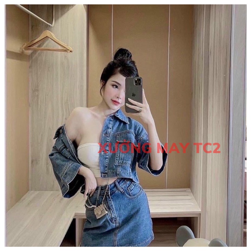 Set áo jean croptop kèm chân váy jean kiểu dáng chữ A kiểu phong cách hàn quốc ulzzang XƯỞNGMAYTC2