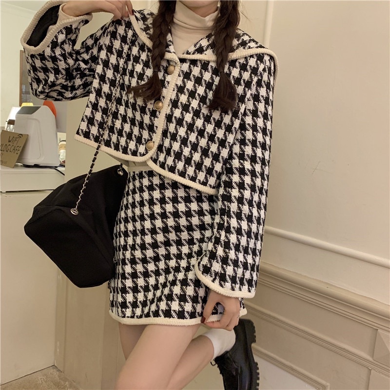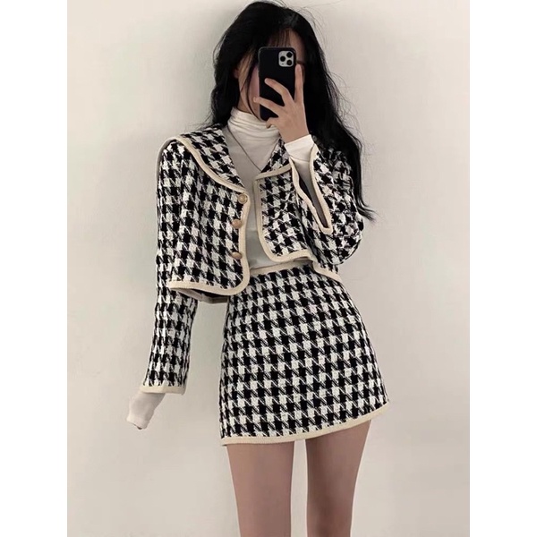 Set áo khoác cardigan dài tay+chân váy ngắn hoạ tiết răng sói houndstooth chic ulzzang SAM SAM BOUTIQUE