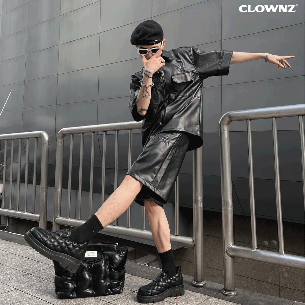 Set áo khoác da local brand ClownZ C-star Black Leather, da tổng hợp unisex nam nữ form rộng