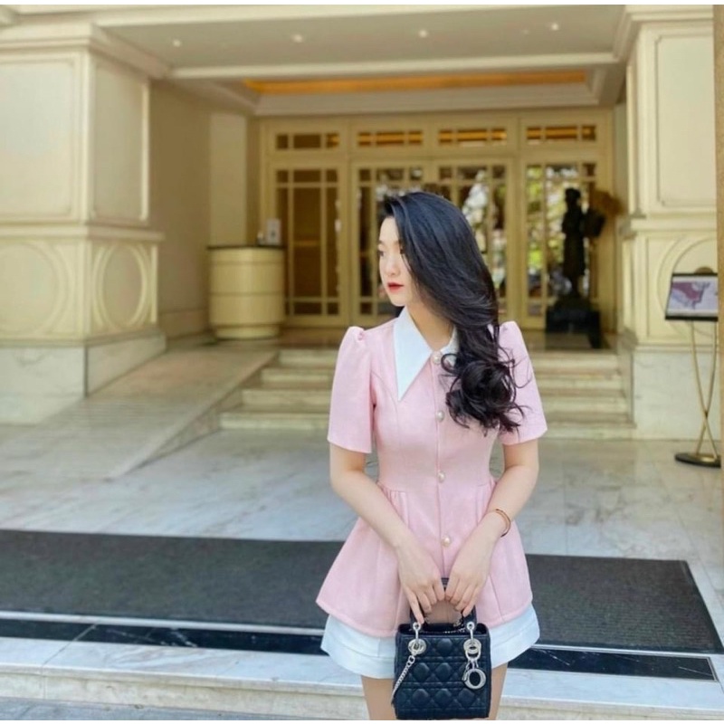 SET ÁO PEPLUM DẠ HỒNG + QUẦN SHORT TRẮNG