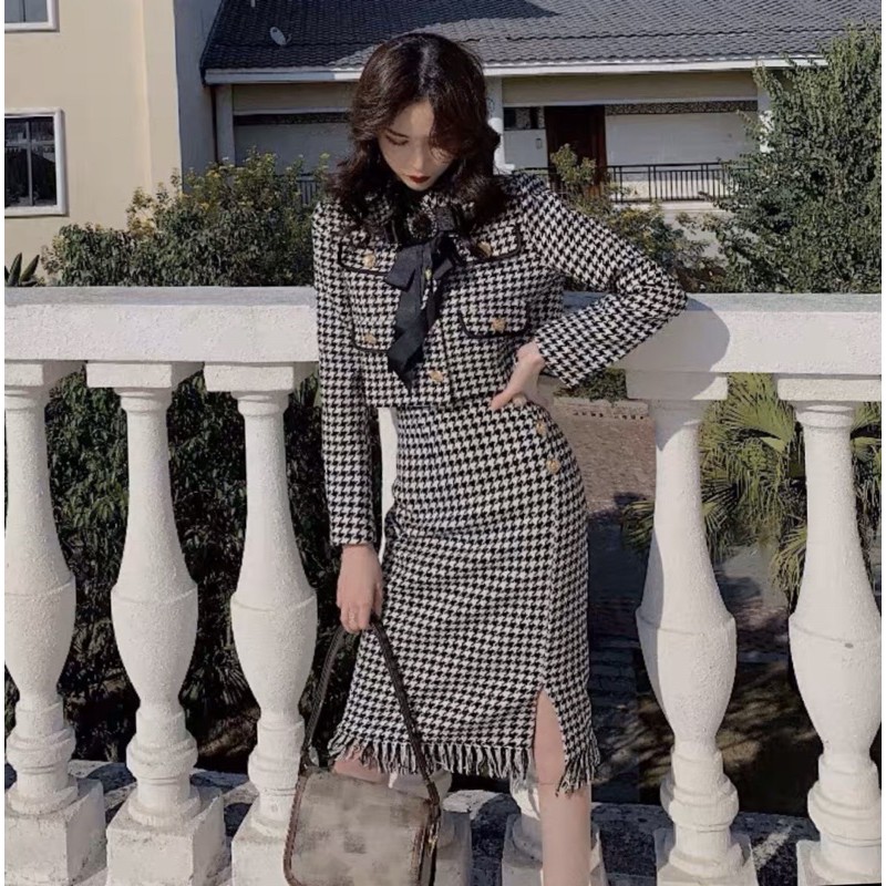Sét áo + chân váy cao cấp giúp các nàng thể hiện phong cách của mình Chất dạ dày dặn nên lên form rất chuẩn Size S M L Sản phẩm có 3 size S, M, L: ✔ Size S: V1 dưới 83, V2 dưới 64. ✔ Size M: V1 82-86, V2 64-68. ✔ Size L: V1 86-90, V2 68-74. Vì là hàng order nên