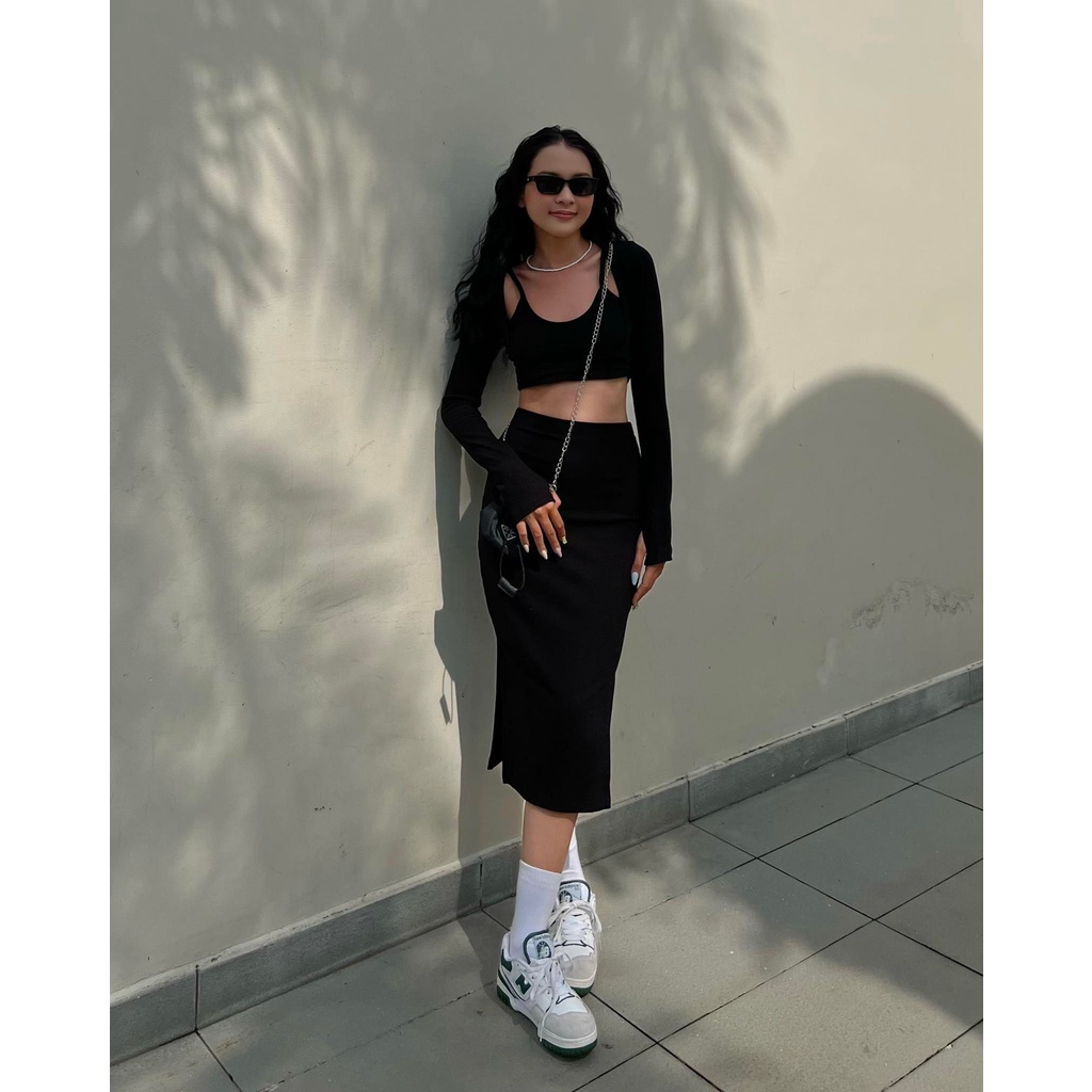 Black Top + Pencil Skirt Set Set gồm chân váy bút chì dài ôm tôn vòng 3 quyến rũ kết hợp với áo dài tay thiết kế lót trong kín kẽ. Chất thun co giãn dễ chịu lắm á mấy bà. Tách set phối lẻ được 800 kiểu luôn ó Size chart: Size S dưới 50kg Size M dưới 56kg HƯỚNG DẪN V