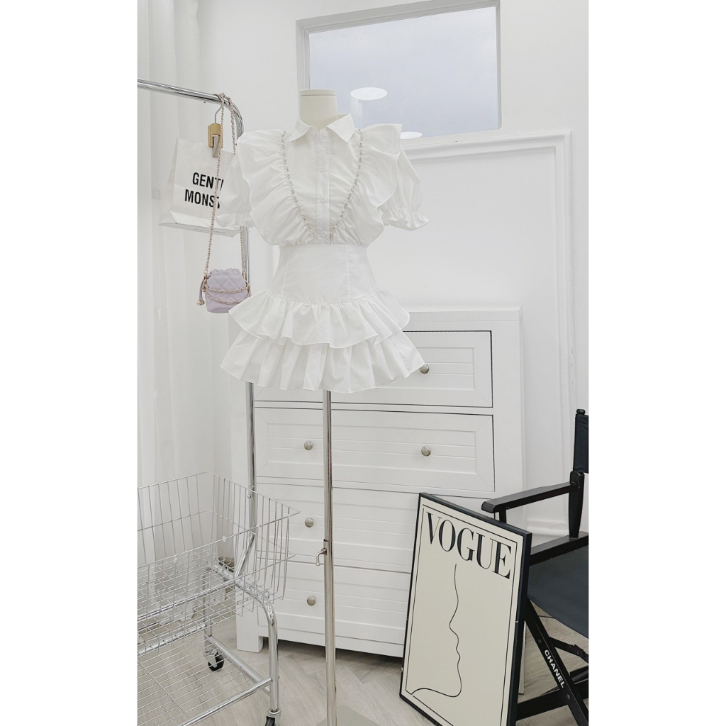 Set Áo Trắng Viền Bèo + Chân Váy Bèo Tầng