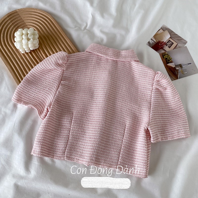 Set áo váy dạ tweed màu hồng cạp chun có ảnh thật AC010