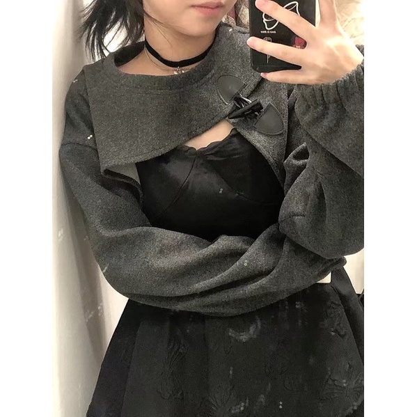 Set Đầm Hai Dây Màu Đen Phối Áo Croptop Thời Trang Nữ