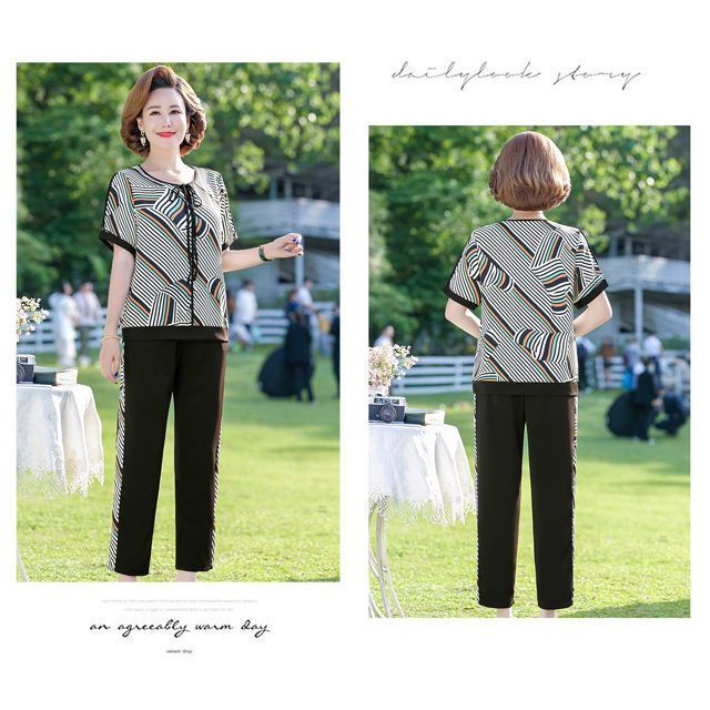 Set Đồ Hai Mảnh Áo Tay Ngắn Cổ Tròn Phong Cách Phương Tây Thời Trang Mùa Hè 2023 Cho Nữ Trung Niên 2023