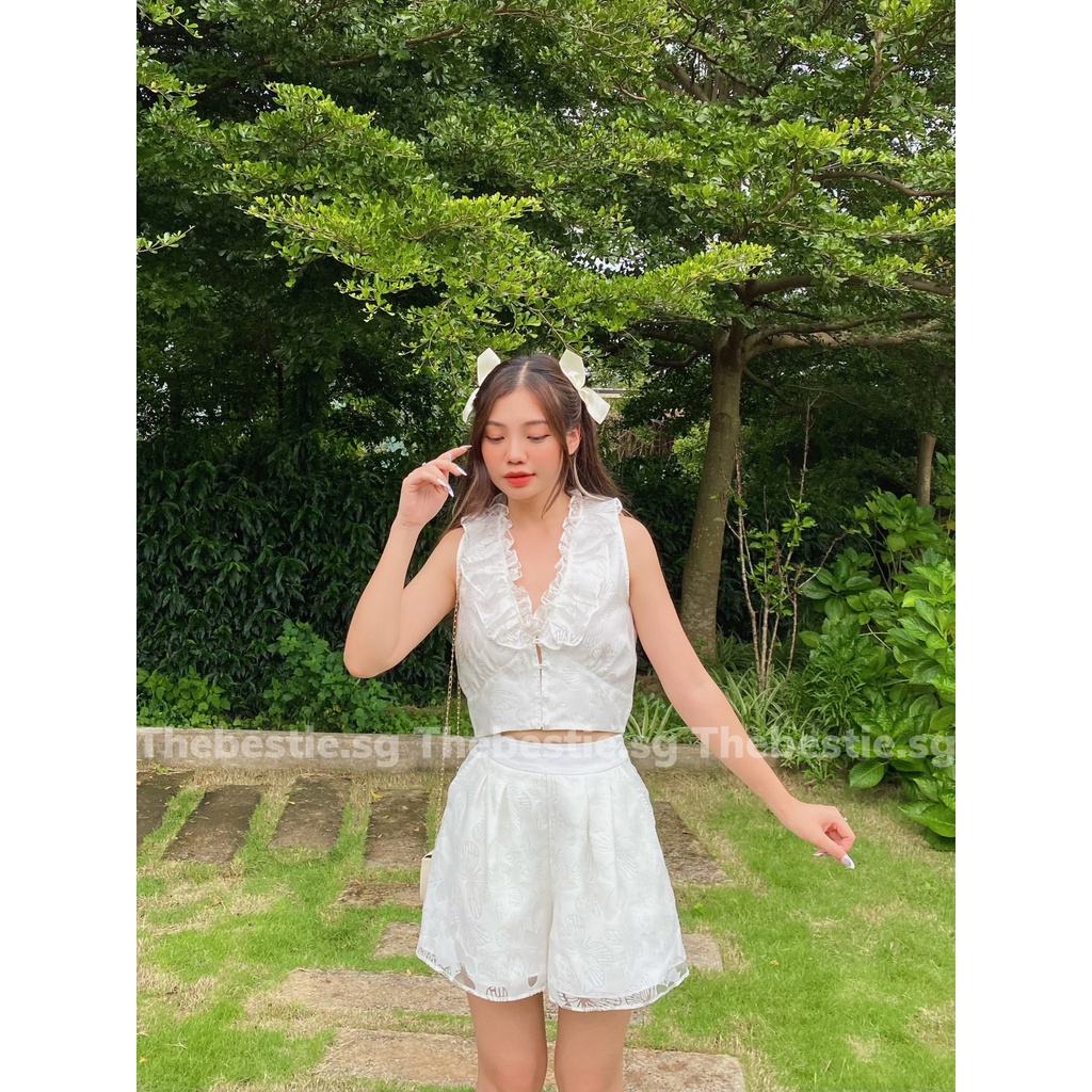 Set đồ nữ, áo cổ bèo kèm quần nhẹ nhàng tiểu thư