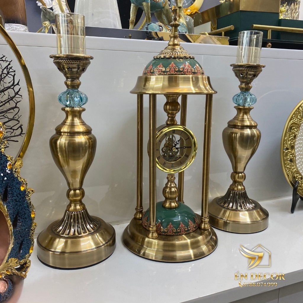 Set Đồng Hồ Chân Nến Cao Cấp, Trang Trí Nhà Cửa, Vật Phẩm Phong Thủy Quà Tặng, Én Decor