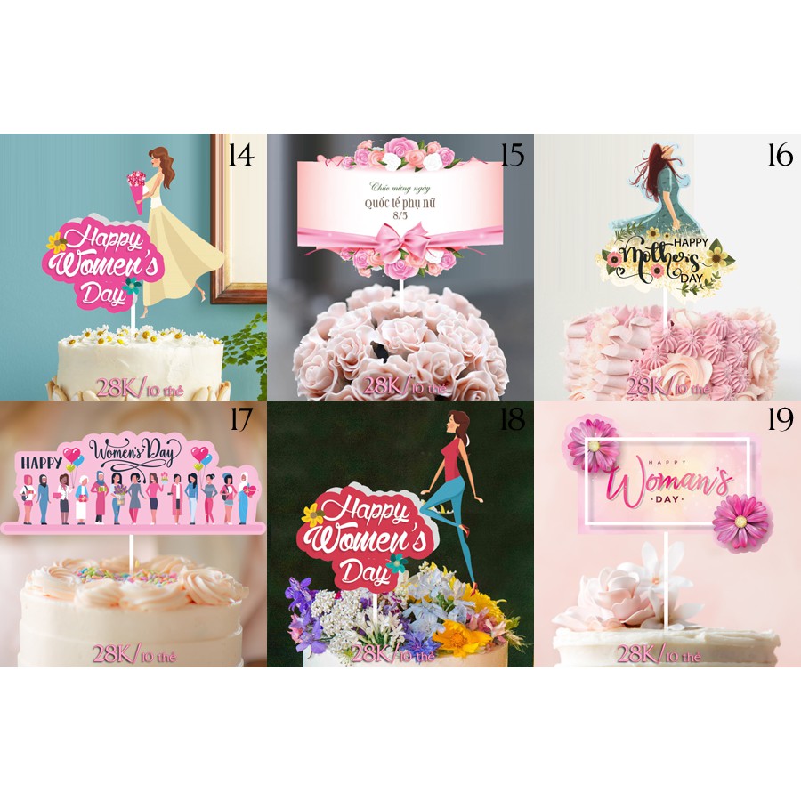 Set 10 thẻ ngày Quốc tế Phụ nữ 8.3 - Trang trí bánh sinh nhật