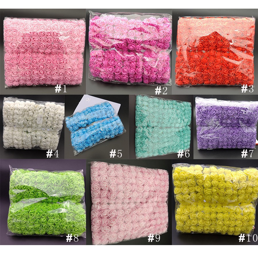Set 12 bông hoa hồng xốp 2cm đính voan dùng để trang trí, làm đồ handmade, trang sức