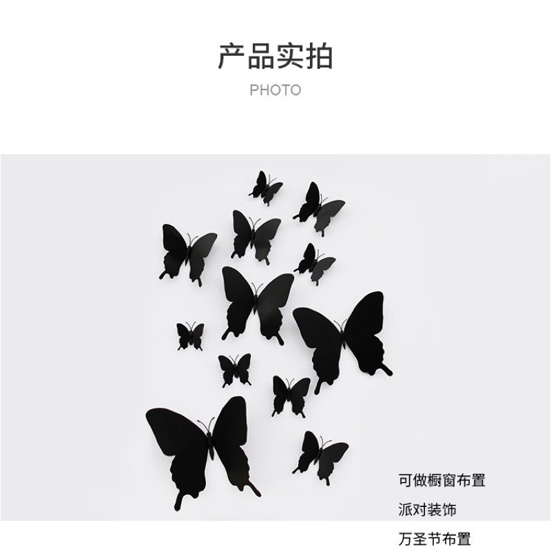 Set 12 con bướm giả màu đen 3D trang trí nhà cửa