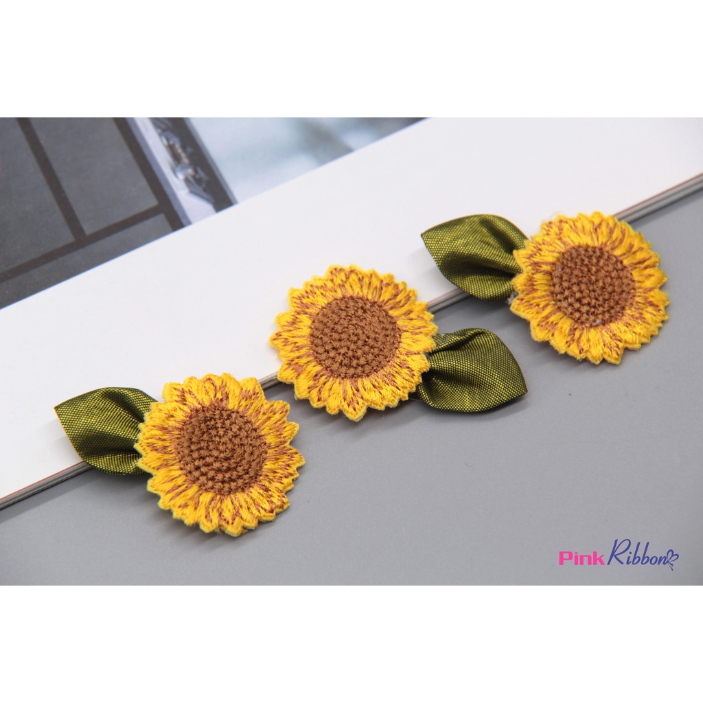 Set 2 bông - Hoa hướng dương thêu có lá - Phụ kiện thời trang may mặc