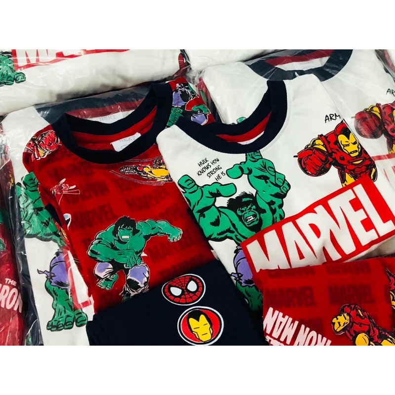 Set 2 bộ cotton dài tay bé trai siêu nhân Marvel trắng đỏ