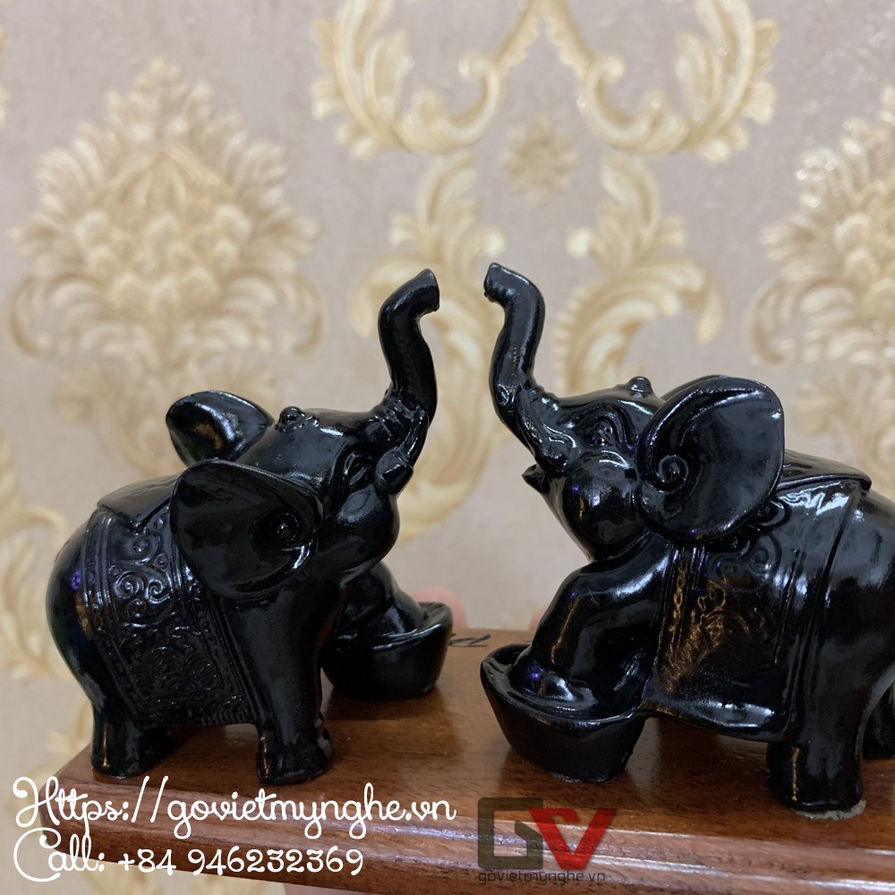 Set 2 tượng voi đá thỏi vàng trang trí quà tặng tân gia - Đế gỗ - Màu đen tuyền