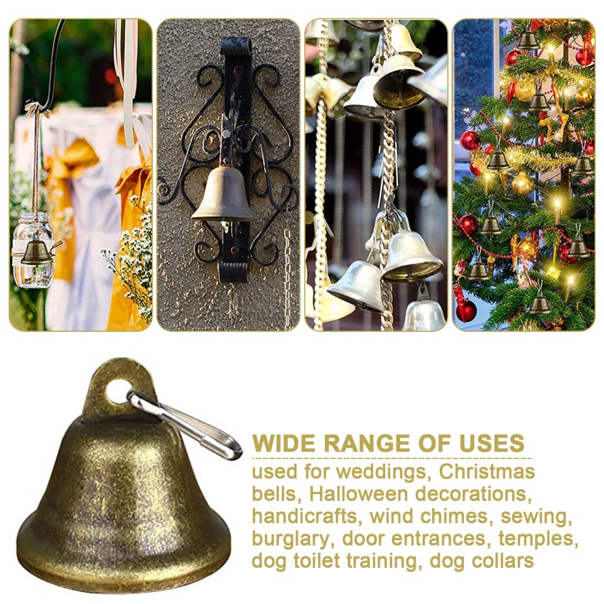 20 cái Chuông thủ công Chuông keng đồng Chuông cổ điển với móc lò xo để treo trang trí Giáng sinh Trang trí đám cưới Huấn luyện bô cho chó Gói bao gồm: 20 chiếc Chuông Jingle Đồng với 20 chiếc khóa lò xo, đủ đáp ứng nhu cầu sản xuất hàng ngày và nhu cầu trang trí lễ