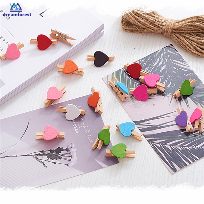 Set 20 Kẹp Gỗ Hình Trái Tim 3cm Dùng Để Gắn Treo Ảnh Trang Trí