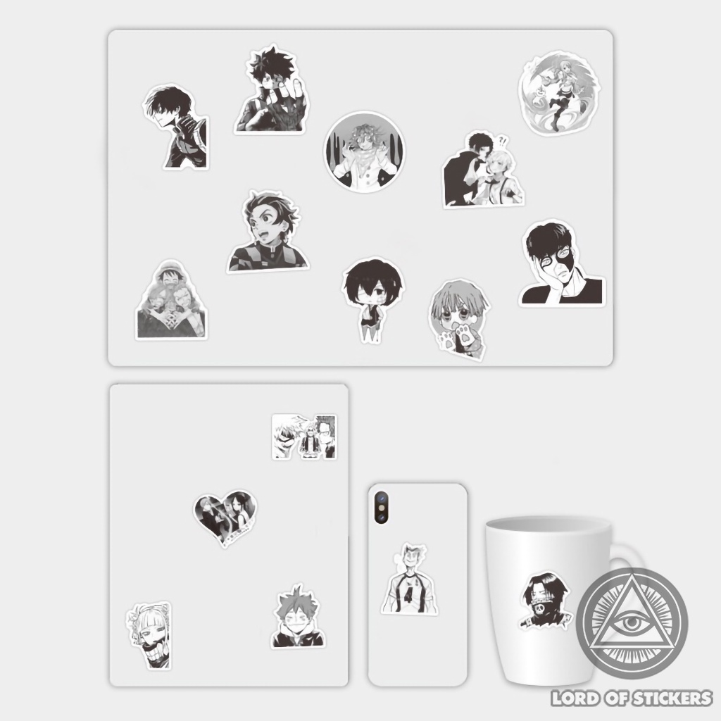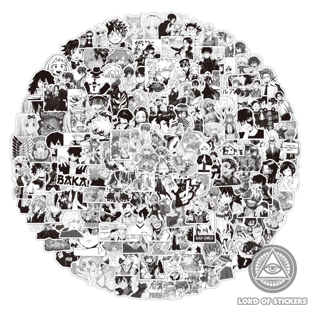 Set 200 Sticker Anime Manga Hình Nhân Vật Truyện Tranh Đen Trắng, Hình Dán Trang Trí Mũ Bảo Hiểm, Laptop, Xe, Vali, Sổ