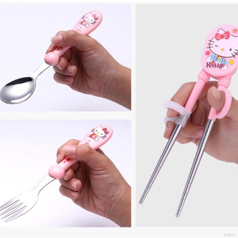 Set 3 Món Muỗng + Đũa + Nĩa Bằng Thép Không Gỉ Cho Bé Tập Ăn