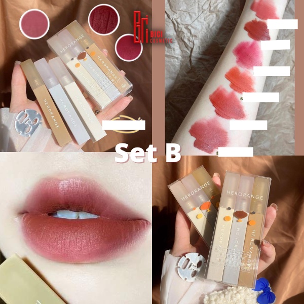 Set 3 Son Kem Lì Herorange Vuông Gấu Xanh Mùa Đông Winter Matte Lip Glaze Nội Địa Trung