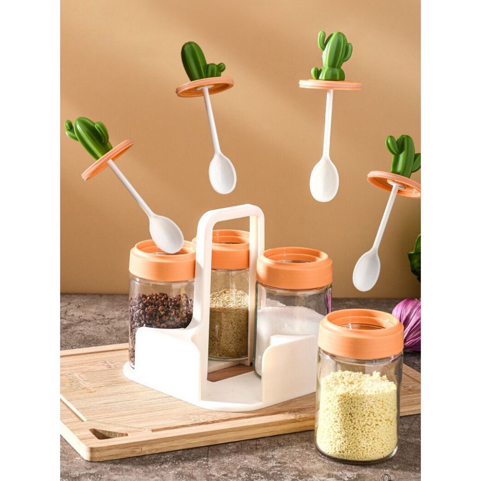 SET 4 Hũ thủy tinh hình xương rồng đựng gia vị kèm thìa mẫu mới 2022