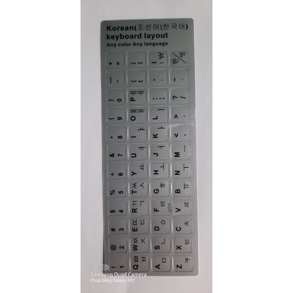 Set 4 Miếng dán bàn phím tiếng Hàn màu Bạc (Xám, Ghi) rất phù hợp với máy tính có màu Xám hoặc Bạc hoặc Ghi . Hàng bao chất lượng cao, hàng xịn đẹp, hình chụp thực tế. Shop còn nhiều màu khác: Miếng dán tiếng Hàn trong suốt chữ đen, chữ trắng, chữ xanh, chữ đỏ Miếng dán tiếng Hàn màu đen chữ màu trắng, chữ cam, chữ vàng Miếng dán tiếng Hàn màu xám bạc phù hợp với các máy tính màu xám, màu bạc Miếng dán tiếng Hàn màu trắng Miếng dán tiếng Nga, Nhật..... Các bạn vào cửa hàng của Shop SNN tự chọn nhé ! và có thể inbox lựa riêng để shop gửi cho theo ý bạn ! ------------------------------------------------------------------------------- Miếng dán bàn phím tiếng hàn cho PC Kích Thước sản phẩm: 18*6.6 cm Trọng Lượng: 4.85 gam /Sticker. Chất Liệu: Nhựa PVC Màu Sắc: + Nền Đen chữ trắng , Đen chữ màu Cam, Đen chữ màu vàng, trong suốt chữ trắng: nên dùng cho bàn phím nền đen chữ trắng +Nền trắng chữ đen: dùng cho macbook, loại bàn phím nền bạc, trắng chữ đen +Nền trong suốt chữ màu đen, màu Cam, màu Xanh dương: dùng cho macbook, loại bàn phím nền bạc, trắng chữ đen +Nền màu Bạc chữ màu Đen: Màu Bạc mà sử dụng cho bàn phím màu Bạc được các khách khen màu miếng dán đẹp hơn cả màu máy tính. dùng cho macbook, máy tính laptop, máy tính bàn, các loại máy tính Thích hợp Máy Tính bàn, laptop, các loại máy tính Miếng dán bàn phím tiếng hàn gồm những tính năng sau: Thiết kế cho ngôn ngữ Hàn. - Độc đáo lớp phủ bảo vệ từ mài mòn, độ bền lâu dài. - Vật liệu nhựa PVC dán bàn phím, chống bụi không thấm nước và portable. - Sử dụng chất kết dính với vững, dễ dàng sử dụng và loại bỏ và không có dư lượng. - Độc lập dán, không cần lo lắng về toàn bộ size dán. gói HƯỠNG DẪN SỬ DỤNG: 1. Trước khi dán: Lau bàn phím sạch sẽ và khô ráo 2. Gỡ từng miếng chữ từ tấm dán, dán lên chữ bàn phím máy của bạn tương ứng cho tới khi hết. Ví dụ: gỡ chữ A thì dán lên phím A trên máy tính của bạn. 3. Sau khi dán: Lau sạch bằng vải để không bị dính mấy bụi bẩn Liên Hệ ngay shop nhé: * Hình shop tự chụp nha Liên Hệ ngay shop nhé: * Hình shop tự chụp nha