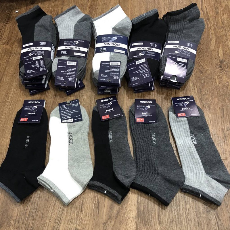 Tất miniso cổ ngắn sẵn hàng loại đẹp ❤️Thiết kế freesize, đơn giản cho cả nam và nữ ❤️Em bán theo lố 5 đôi chọn màu: 1 bó mỗi bó 5 đôi, gồm màu ngẫu nhiên đen, trắng, ghi đậm, ghi nhạt