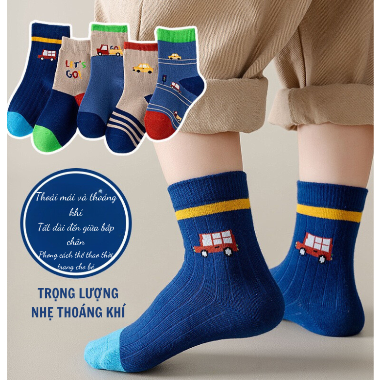 Set 5 Đôi Tất Cho Bé Co Giãn Bốn Chiều - Combo 5 Đôi Vớ Trẻ Em Cotton