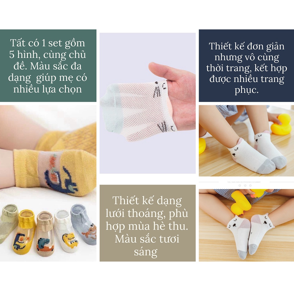 Set 5 đôi tất lưới cổ thấp Kid Sock điều hòa cho bé từ 0-3 tuổi
