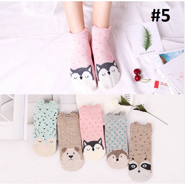 Set 5 đôi tất nữ, vớ nữ cổ ngắn hoạt hình ngộ nghĩnh dễ thương