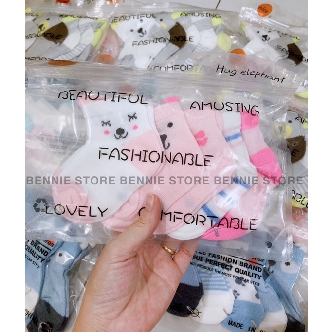 Set 5 đôi vớ lưới cổ cao cho bé, Tất cho bé sơ sinh đóng túi Zip