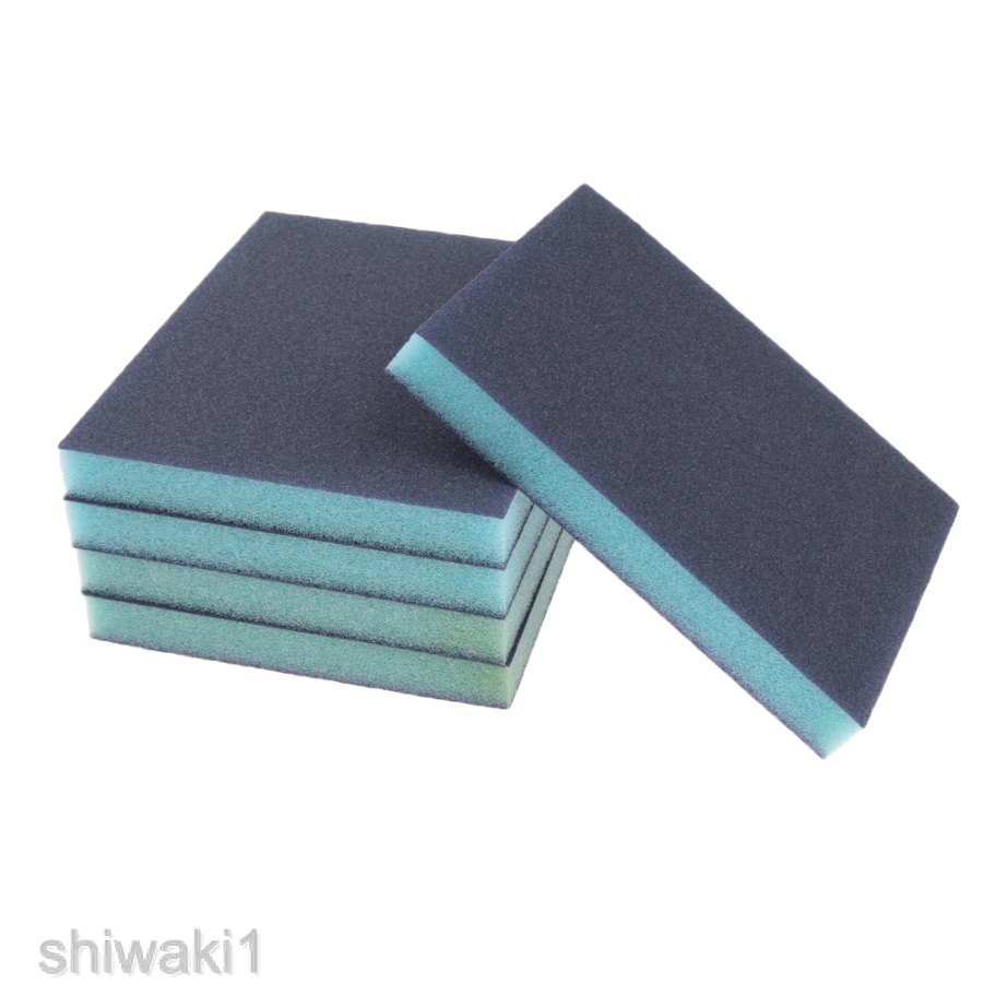 Description: Can be rinsed and reused in wet and dry conditions Especially good for small area grinding and polishing Used for polishing woodcrafts, furniture, paint, plastic, car kitchen equipments, wall, floor, etc. 2 sides abrasive grain coated - 5 sponges per pack Perfect for sanding flat, curved and contoured surfaces and materials for its good flexibility Specification: Material: Aluminium Oxide & Emery coated on High-density Sponge Overall Size: 120 x 98 x 12 mm / 4.7 x 3.9 x 0.5 inch Grit size of 80, 100, 120, 150, 180 Grit are all available in our shop. Package Includes: 5 Pieces Sanding Sponges Note: Sponge sandpaper can be re-used for it can be washed by water, but still has certain life in use.