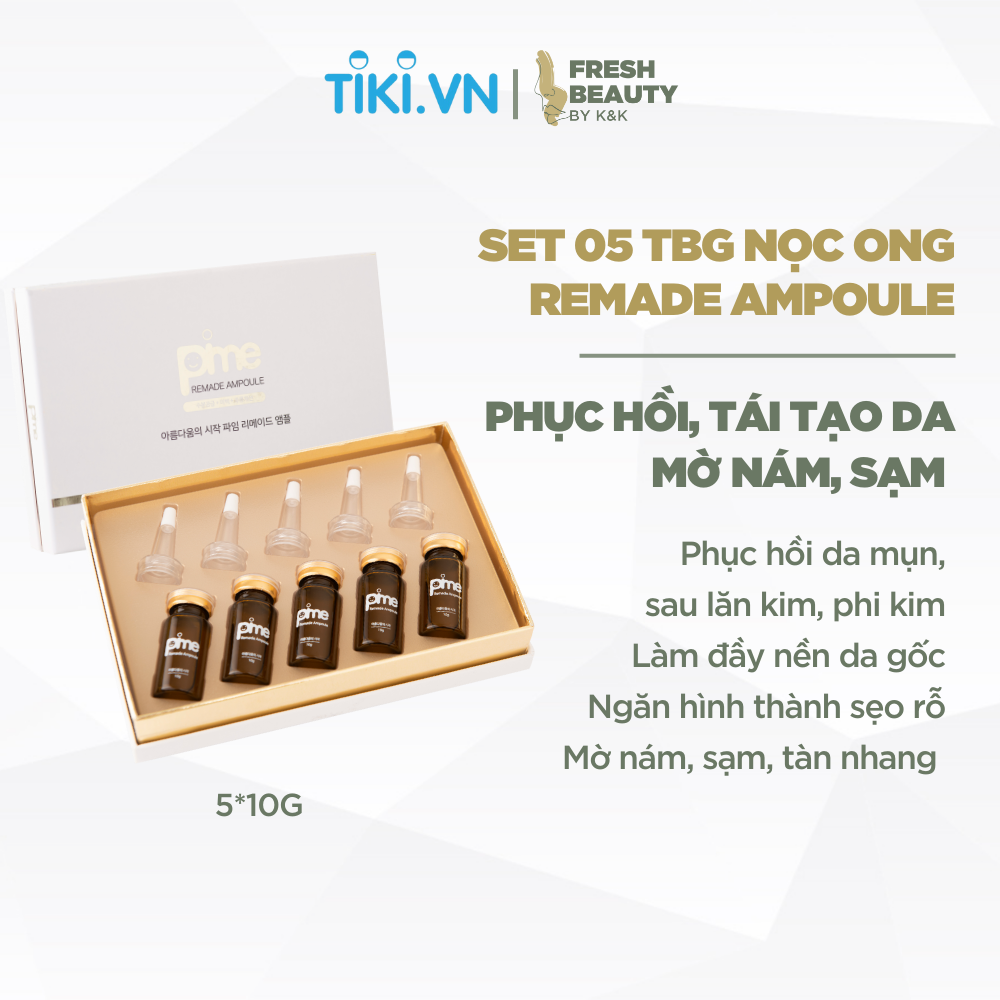 Set 5 Tế bào gốc nọc ong Pime Remade Ampoule tái tạo phục hồi da, hỗ trợ mờ sẹo rỗ, nám