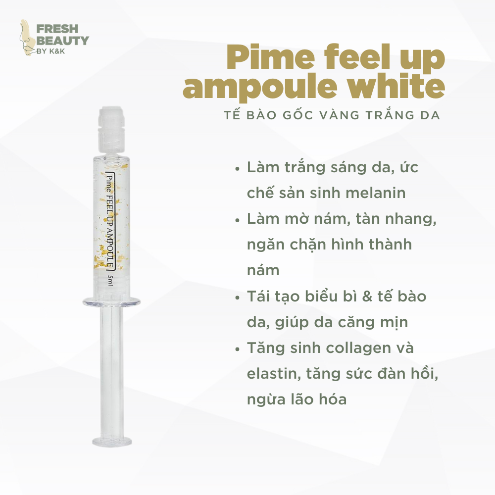 Set 5 ống tế bào gốc vàng 24K trắng da, tinh chất ức chế nám, tàn nhang, dưỡng da căng bóng, kiềm dầu, se chân lông, dưỡng da căng bóng mịn màng, tái tạo da Pime Feel Up Ampoule White 5ml/ mỗi tuýpSả...