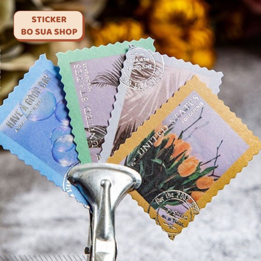 Set 50 sticker tem thư ánh bạc cổ điển trang trí phong bì sổ tay ốp lưng phong cách Châu Âu