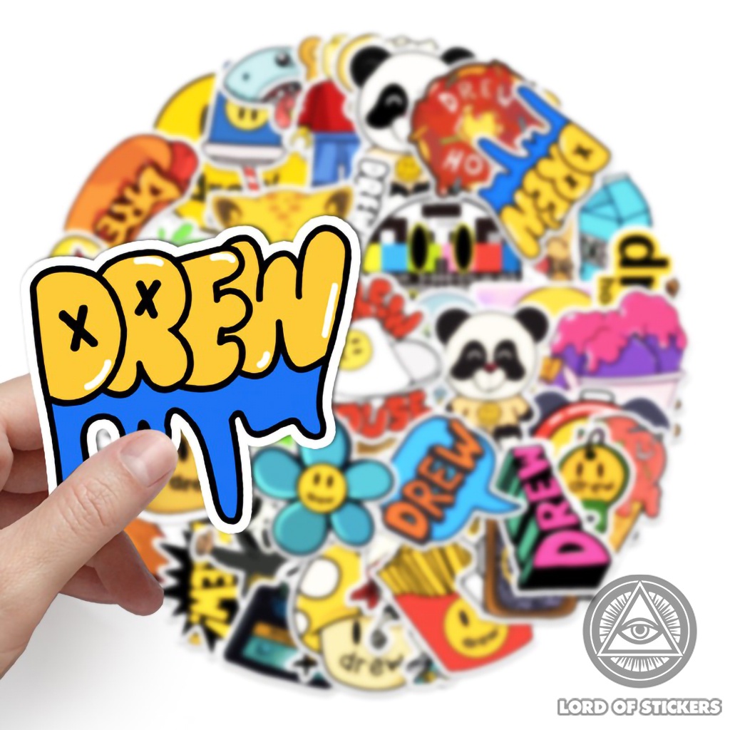 Set 54 Sticker DREW Cực Chất, Hình Dán Drew House Justin Bieber Chống Thấm Nước Trang Trí Mũ Nón Bảo Hiểm, Laptop, Vali