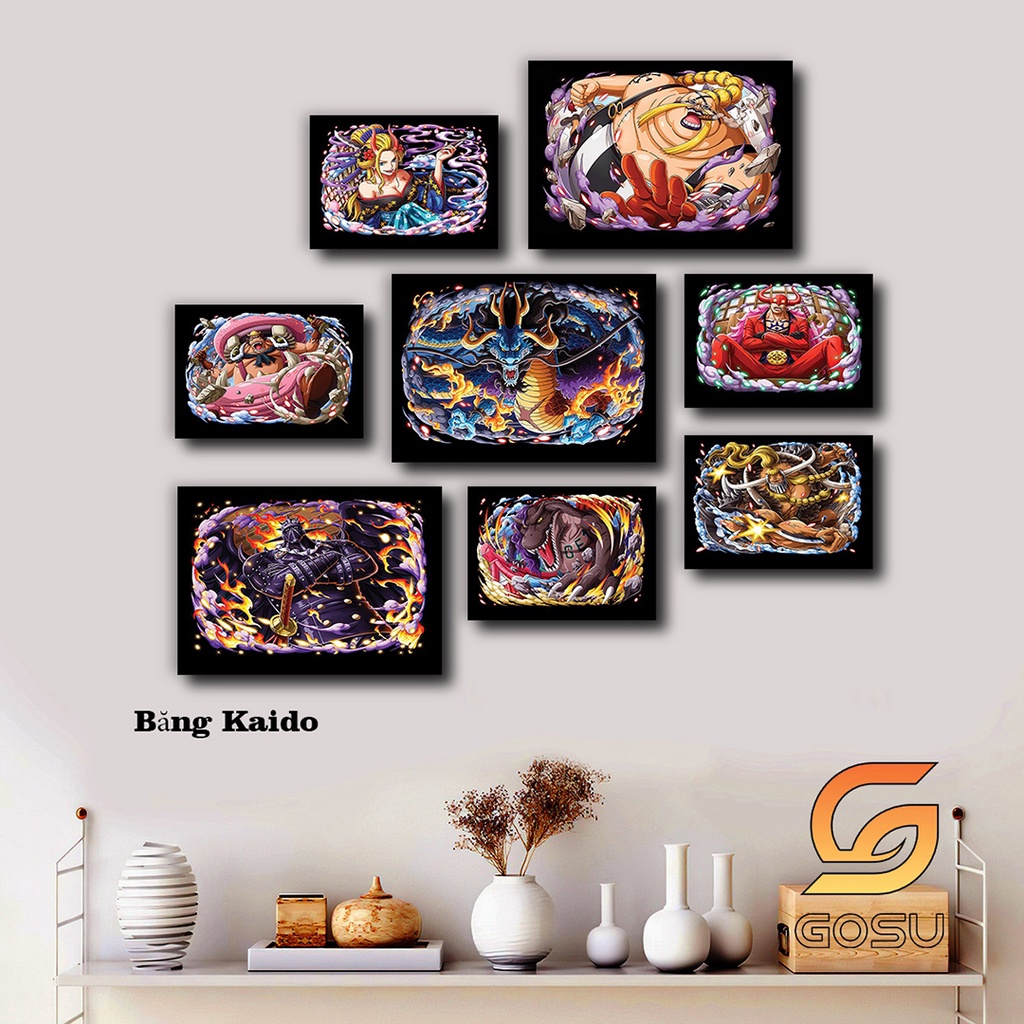 Set 8 Tranh Dán Tường Chủ đề Băng Kaido, Râu Đen, Tóc Đỏ, Cp9, Đô Đốc, Hải Quân, Thất Vũ Hải, Wano Arc, Siêu Tân Tinh