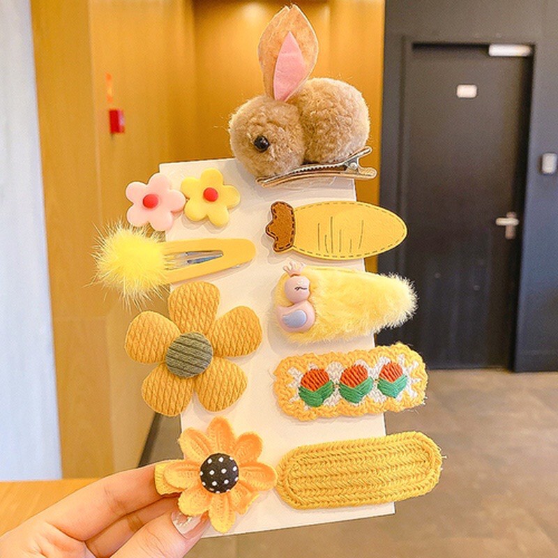 Set 9 kẹp tóc đan len/ vải và nhựa nhiều mẫu dễ thương cho bé gái
