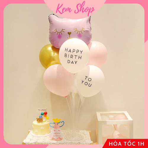 Set bóng kèm trụ bóng 7 nhánh cao 70cm Kem Shop trang trí sinh nhật siêu đẹp - K300