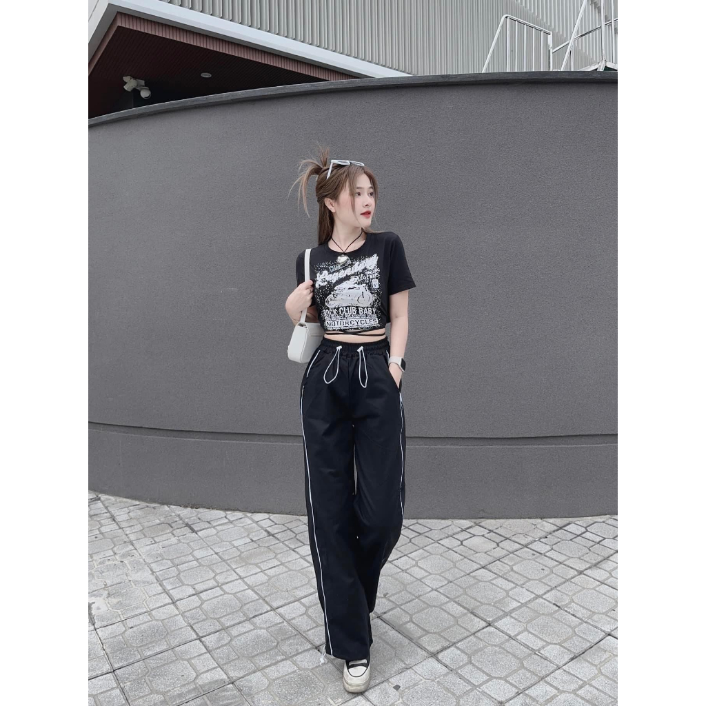Set bộ đồ nữ áo croptop hình họa tiết cute mix quần suông phối viền siêu xinh dành cho các nàng diện đi chơi