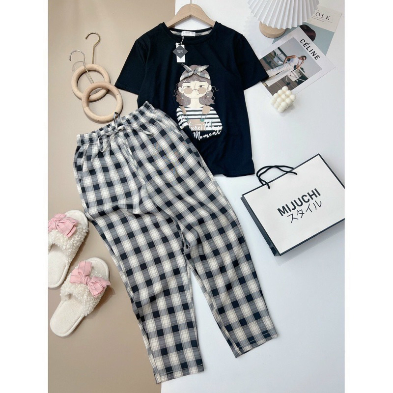 Set bộ cô gái mix quần kẻ