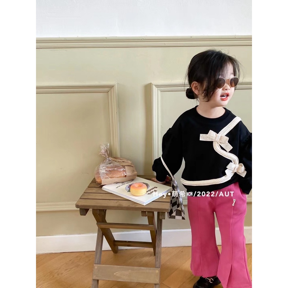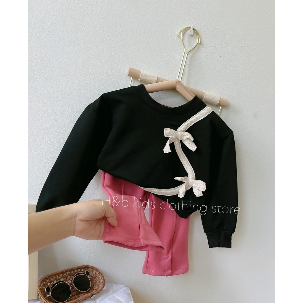 Set Bộ Sang Chảnh Áo Đen Quần Hồng Vải Da Cá Mặc Thu Đông Cho Bé Gái