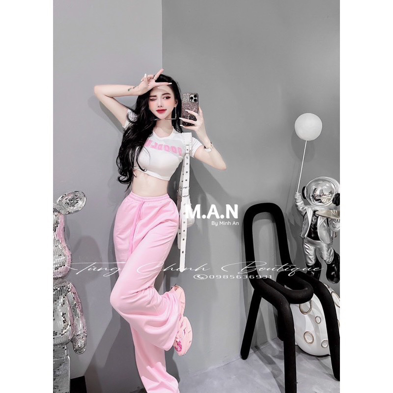 Set Bộ Thể Thao Áo Ôm Croptop Gôdluck + Quần kaki Mịn Ống Bo maB, Quần Dài Lưng Chun