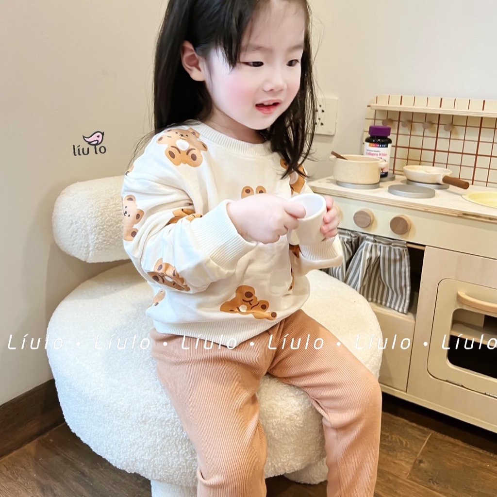 Set Bộ Trắng in hoạ tiết gấu nâu