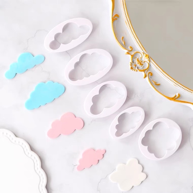 Chất liệu: Nhựa Kích thước: như hình Sét 5 khuôn với 5 hình dáng mây khác nhau Dùng để dập cắt hình mây 2D bằng fondant/đất sét --------//------------//-------- CAKEBAE- CHUYÊN NGUYÊN LIỆU DỤNG CỤ FONDANT ĐẤT SÉT