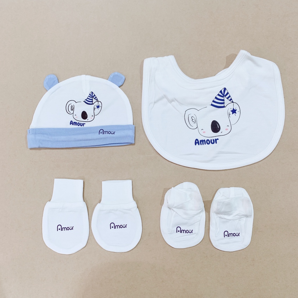 SET MŨ YẾM BAO CHÂN TAY SƠ SINH CHẤT SỢI TRE AMOUR
