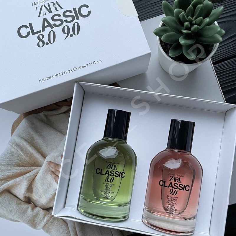 ZARA 8.0 + 8.0 SUMMER EDT 80 ML (2.7 FL. OZ). BỘ HAI CHAI NƯỚC HOA. VỚI CÁC TẦNG HƯƠNG THƠM BAO GỒM CÁC NỐT HƯƠNG CỦA CAM BERGAMOT, TIÊU VÀ BẠCH ĐẬU KHẤU + QUÝT, TUYẾT TÙNG VÀ XẠ HƯƠNG. Tông mùi mát mẻ nam tính và ngọt nhẹ, rất dễ dùng thanh lịch và lịch lãm. Sản p