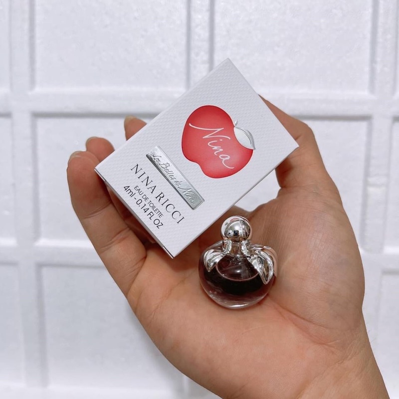 💃💃🎁 Set Nước hoa Nina Ricci Nina EDT 4x4ml ✅✅✅ Nina Ricci được các chị em biết đến với những chai nước hoa rất là nữ tính mộng mơ. Dòng Nina với hình ảnh chai nước hoa tựa như trái cherry căng mọng ngọt ngào và đáng yêu như hình tượng về dòng nước hoa này óh. 🎁🎁🎁 Set gồm 4 chai mini với 3 mùi gồm 2 chai Nina EDT, 1 Elixir, 1 Leau. 🌸🌸 Nina EDT (2006) là chai đầu tiên của dòng này lun. Mùi hương vừa mát vừa ngọt. Mở đầu là hương cam chanh fresh. Note giữa hương chanh kéo dài và kết hợp táo xanh rất match luôn. Kẹo chocolate và hoa mẫu đơn ngọt ngào được chanh và táo làm dịu lại. Base note là gỗ (gỗ cây táo) và xạ hương. 🌸🌸 Nina L’Elixir (2010): Em này lại khá là đáng yêu với sự kết hợp đơn giản giữa chanh vàng với những trái dâu rừng ngọt ngào mọng đỏ, hoa nhài và xạ hương. Thơm ngọt trái cây và hoa rất nữ tính dịu dàng. 🌸🌸 Nina L’eau (2013): Em này fresh và đáng iu nhất lun na (màu chai xinh dã man). Mùi thuần hoa cỏ và trái cây. Mở đầu là cam, bưởi chùm, táo và hoa cam tạo cảm giác nhẹ nhàng tươi mới. Note giữa bay bổng với cherry ngọt nhẹ, hoa táo và dành dành thoảng hương được hoà với hương thơm làn nước mát mẻ. Chút xạ hương dằn lại ở base note thui nha. 👍👍👍 Mùi nhẹ nhàng đáng yêu rất dễ dùng, không kén mùa. Mấy em này lưu và toả hương vừa phải thui na.