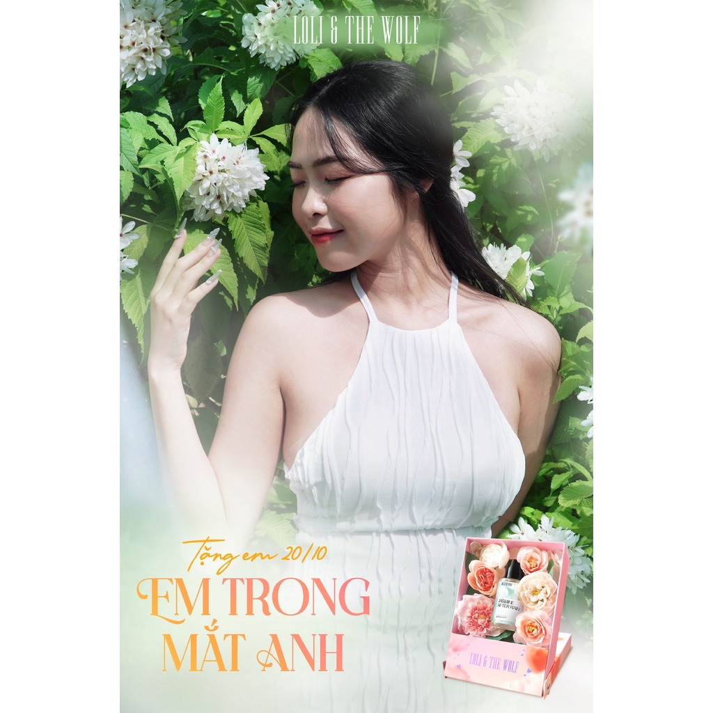 BỘ QUÀ TẶNG 20/10 LOLI AND THE WOLF EM TRONG MẮT ANH - Nước hoa nữ DAISY ON SUNSET hoặc JASMINE AFTER RAIN chai 50ml - Con gái thường hay hỏi “Anh ơi, anh thấy em sao?”. Bởi nỗi lo lắng về hình ảnh bản thân trong mắt người yêu luôn thường trực trong lòng các cô gái. Box quà tặng “Em trong mắt anh” của Loli & The Wolf. Bạn có thể lựa chọn 1 trong 2 mùi nước hoa mới: + Daisy On Sunset: Rạng rỡ & Thơ ngây như cúc hoạ mi dưới ánh hoàng hôn. Một mùi hương hoa dễ chịu và tươi tắn + Jasmine After Rain: Trong trẻo & Thuần khiết như đoá hoa nhài sau mưa. Một mùi hương hoa đằm thắm & dịu dàng * THÔNG TIN SẢN PHẨM - 1 hộp quà được trang trí bằng hoa lụa - 1 Chai nước hoa mùi Daisy On Sunset hoặc Jasmine After Rain dung tích 50ml - Dòng nước hoa Extrait De Parfum với 25% tinh cốt nước hoa - Nước hoa Daisy On Sunset 50ml + Hương đầu: Dâu tây, Nho, Lá Violet + Hương giữa: Hoa Violet, Hoa nhài, Cây Sơn Chi + Hương cuối: Gỗ trắng, Xạ hương, Vanilla - Nước hoa Jasmine After Rain 50ml + Hương đầu: Đào, Vải + Hương giữa: Hoa hồng, hoa nhài, hoa huệ + Hương cuối: Bơ hạt mỡ, hổ phách, xạ hương * THÔNG TIN CHI TIẾT: - Thương hiệu: Loli & The Wolf - Sản xuất tại Việt Nam - Bảo quản ở nhiệt độ phòng - Sản xuất tại: Công ty TNHH Natural House (644/4 Đường 3 tháng 2, Phường 14, Quận 10, Thành phố Hồ Chí Minh) + Lưu ý: Địa chỉ này không bán trực tiếp - Hạn sử dụng: 3 năm kể từ ngày sản xuất - Official Store: 698 Sư Vạn Hạnh phường 12, quận 10, HCM