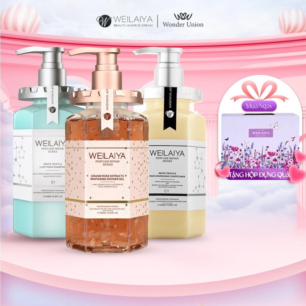 Set quà Weilaiya chăm sóc tóc chiết xuất nấm và Sữa tắm nước hoa, trắng da toàn thân Weilaiya 450ml